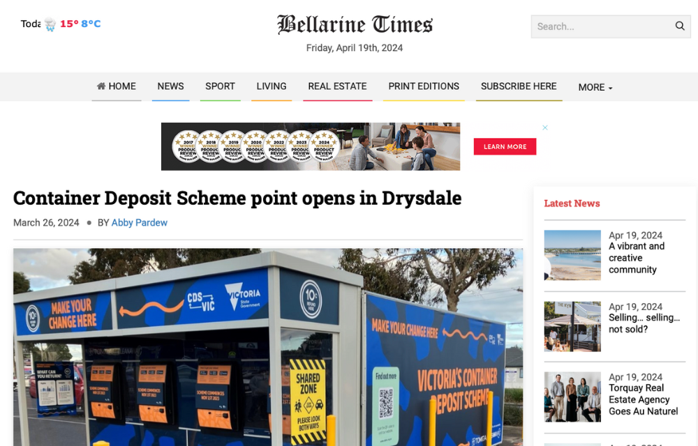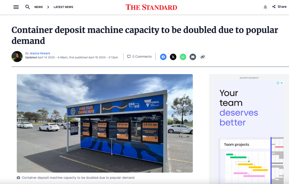 ChangePR has been working as an extension of the TOMRA Cleanaway media and communications team, focusing on increasing brand visibility, building strong relationships with media and key stakeholders, educating the public on the benefits of the container deposit scheme (CDS) and, if required, organising ministerial and MP media opportunities.​