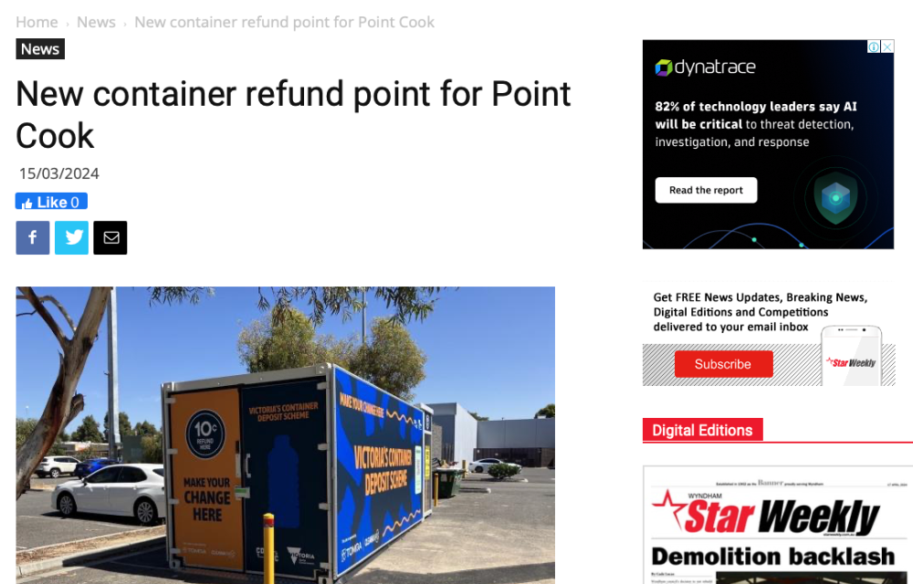 ChangePR worked with TOMRA Cleanaway to develop a range of Video News Releases (VNRs), Radio Releases (RR), and other media materials to highlight the success of TOMRA Cleanaway and their major milestones during the CDS rollout in West Melbourne. We also developed and executed a range of media stories with our strong network of media contacts to highlight TOMRA Cleanaway case studies and partnership operators.